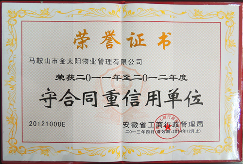 金太陽物業(yè)公司是全市唯一一家榮獲此榮譽(yù)的物業(yè)公司。