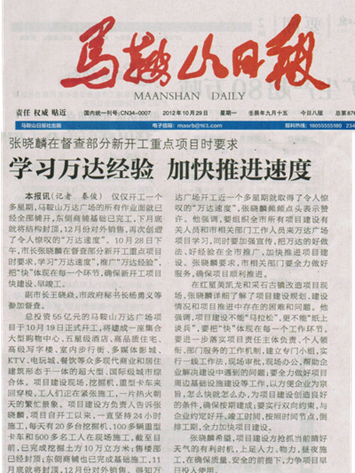 學(xué)習(xí)萬達(dá)經(jīng)驗(yàn) 加快推進(jìn)速度——來自馬鞍山日?qǐng)?bào)的報(bào)道